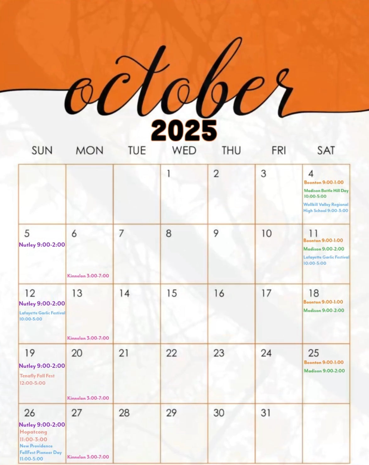 10/26 - Hopatcong Sunday Market & Craft Fair: 11:00-3:00, Hopatchung Road Park & Ride next to 47 Hopatchung Rd (Walgreens Shopping Center)